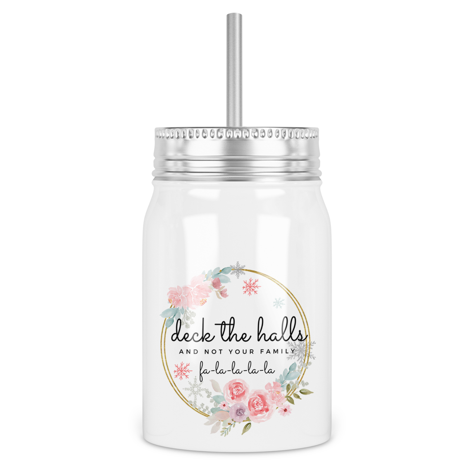 Deck The Halls and Not Your Family Mason Jar With Lid