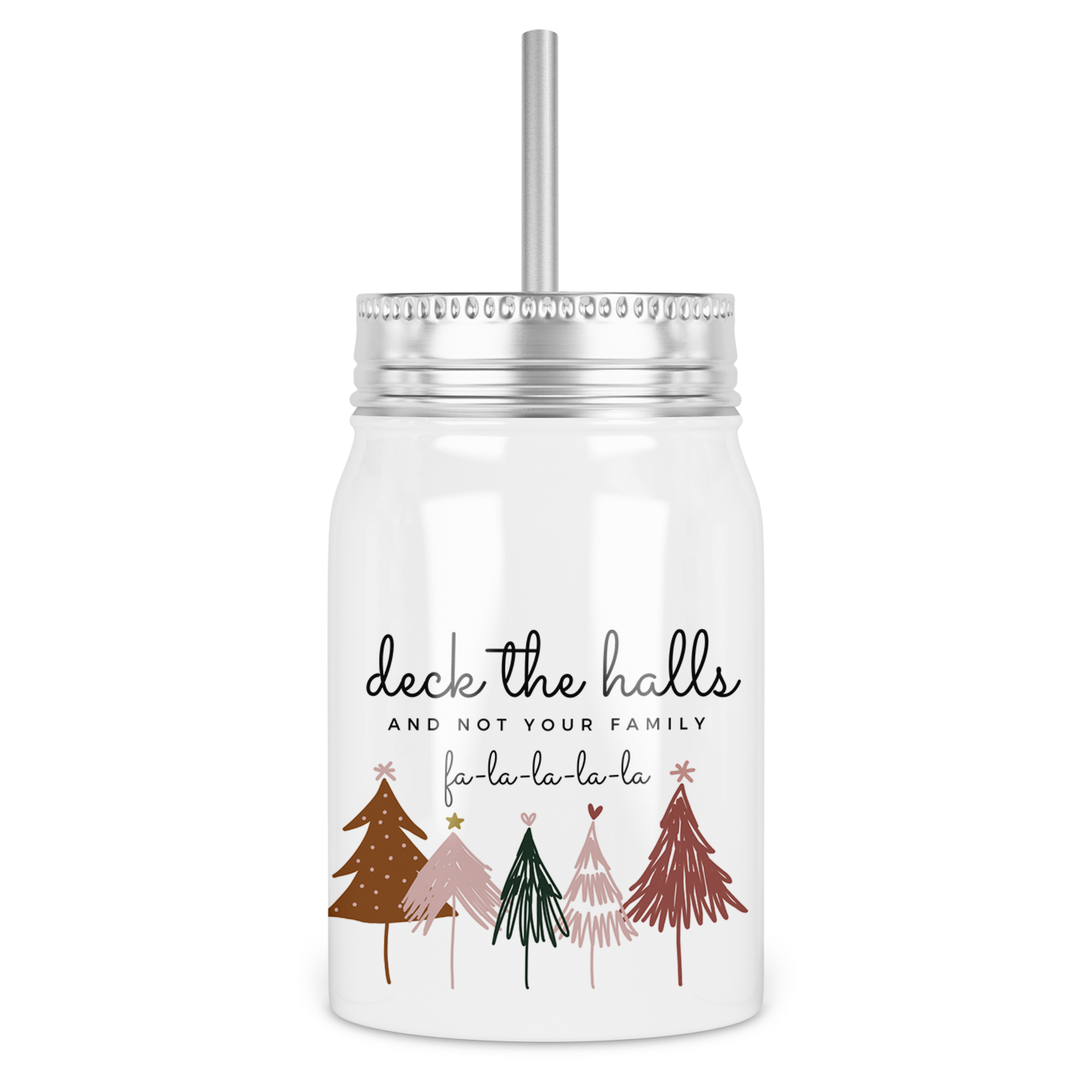 Deck The Halls and Not Your Family Mason Jar With Lid