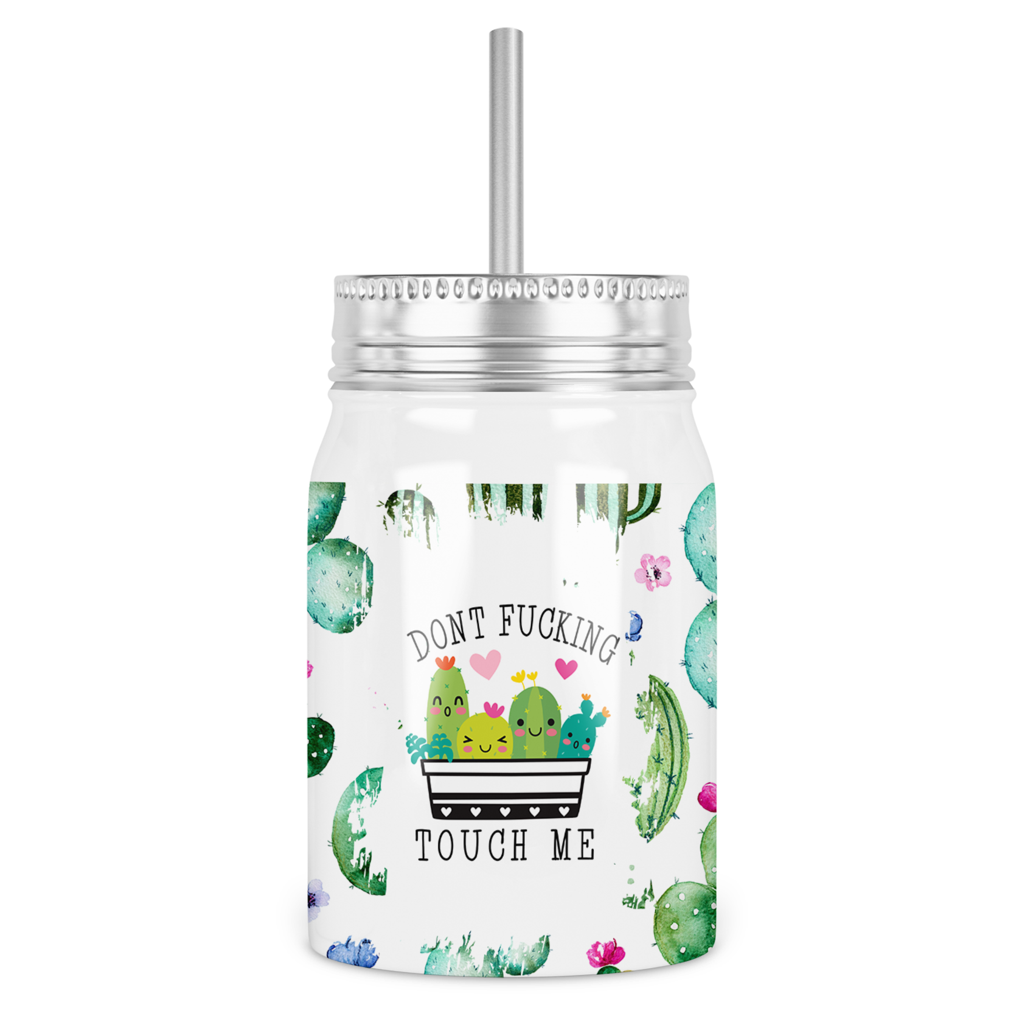 Don't Fucking Touch Me Funny Cactus 16 Oz Shimmer Glass Jar