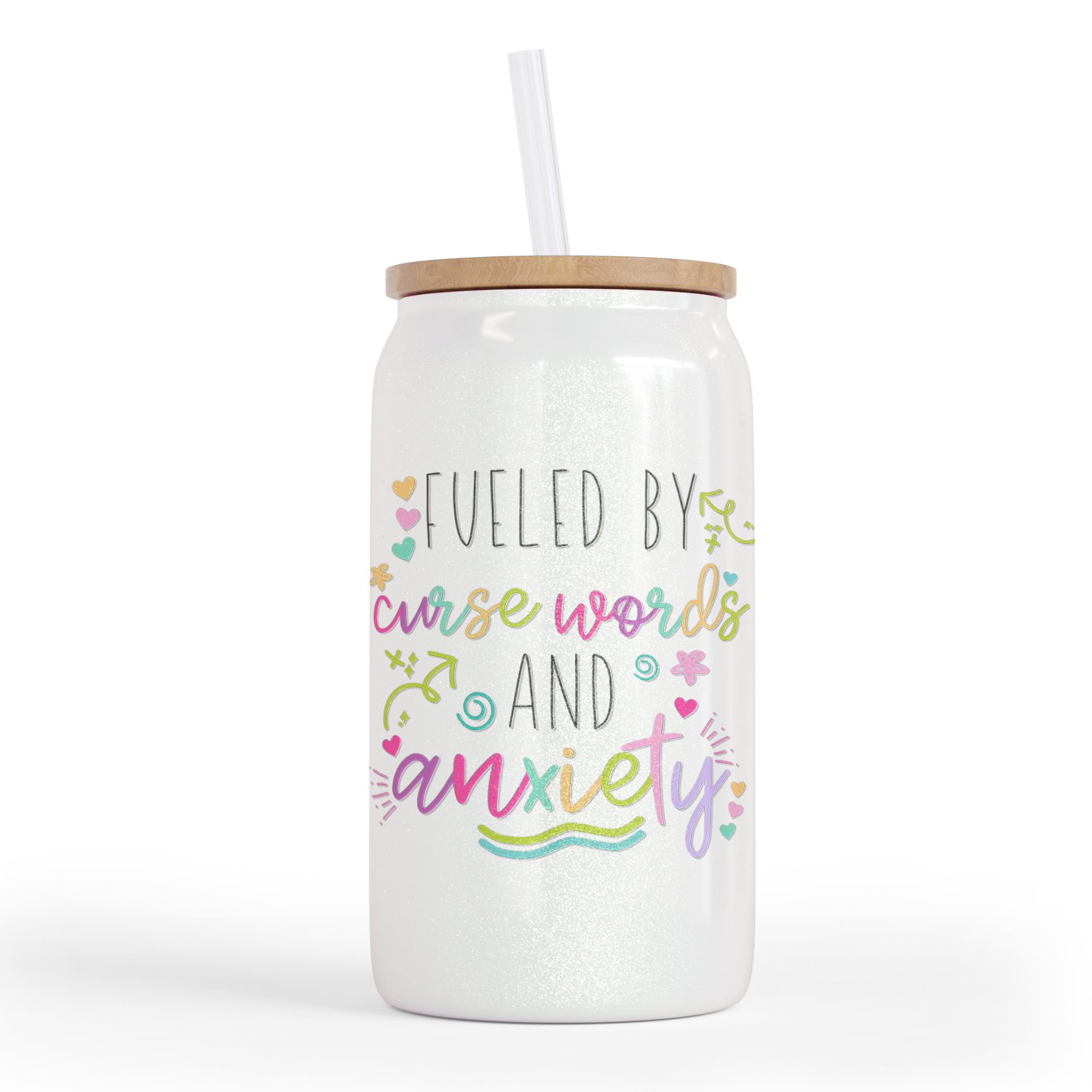 Fueled by Cuss Words and Anxiety 16 Shimmer Oz Glass Jar