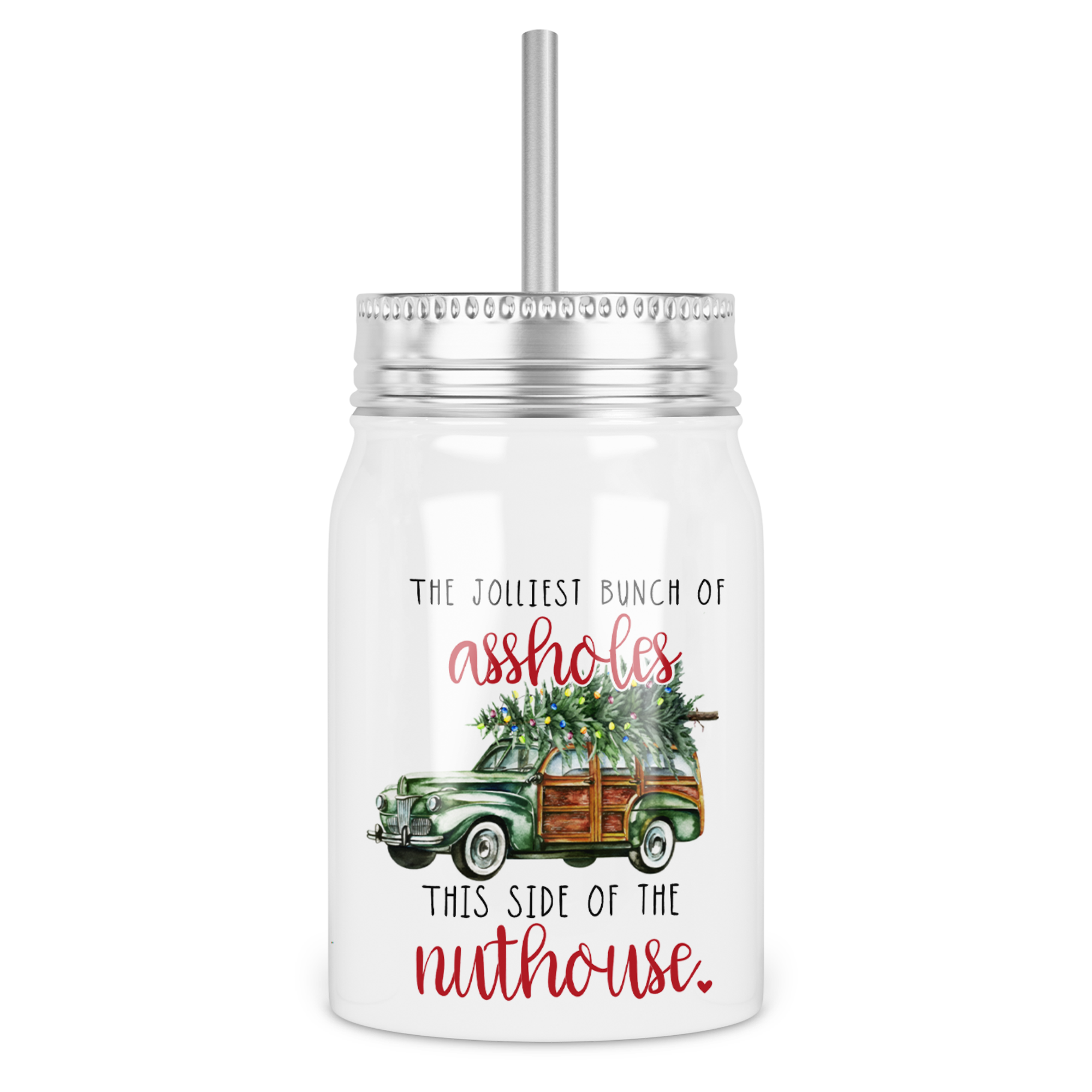 Jolliest Bunch Of Assholes Mason Jar With Lid
