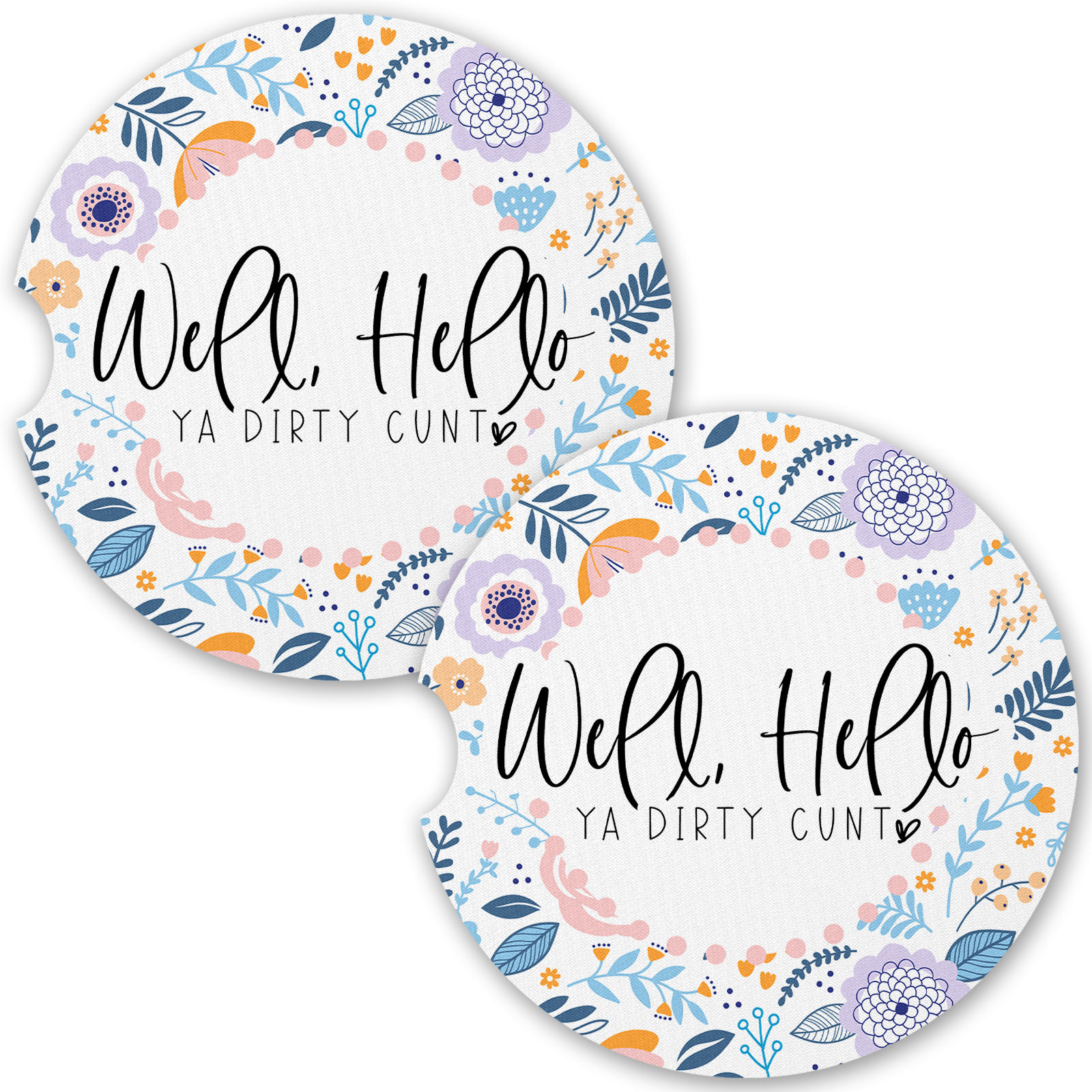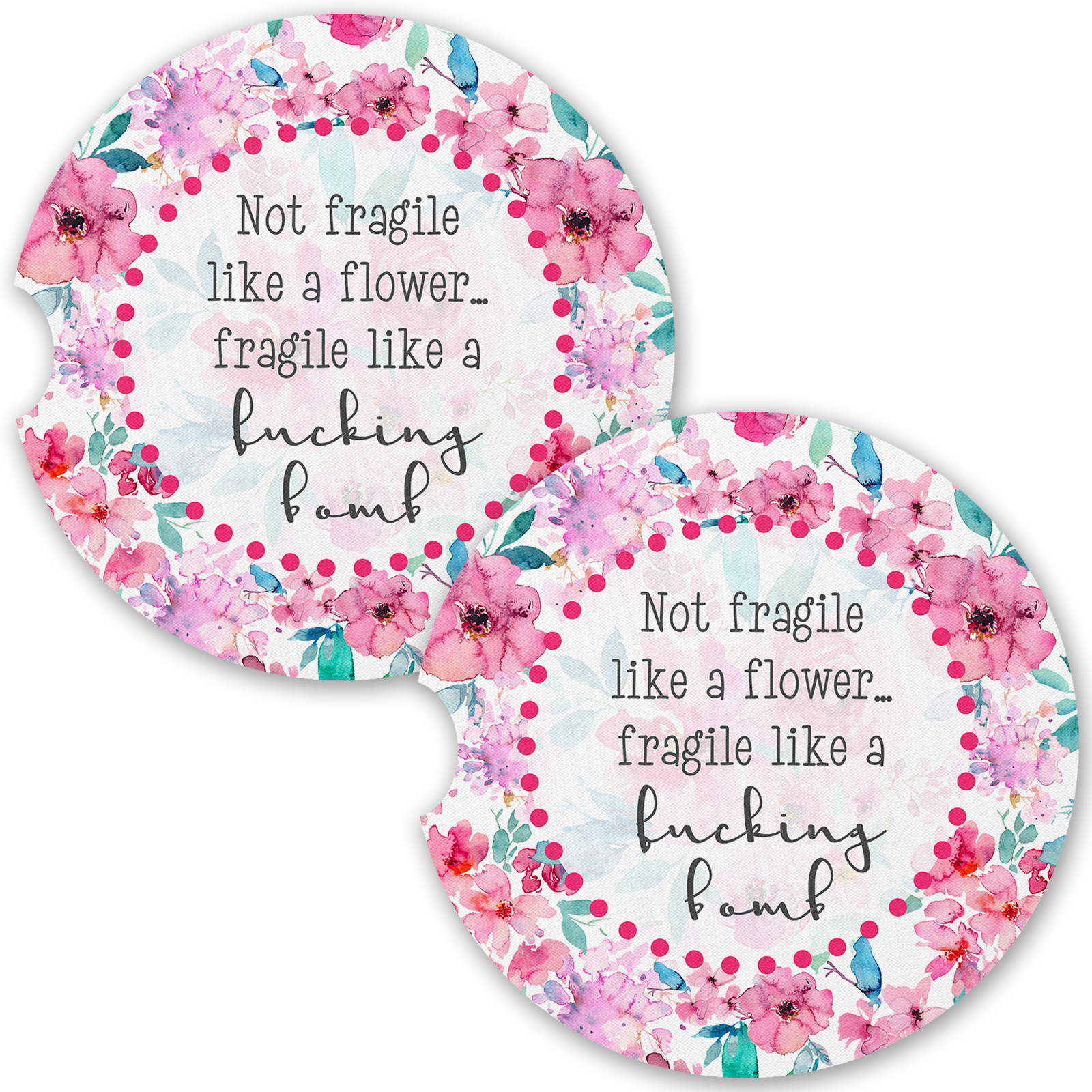 Love You Bitch Floral Car Coaster Set (Set of 2)